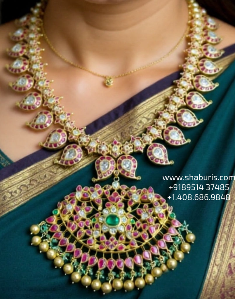 Mango mala Mango haram necklace polki necklace diamond Jewelry necklace Pearl necklace statement jewelry silver necklace 925 silver with 22k gold plated - SHABURIS