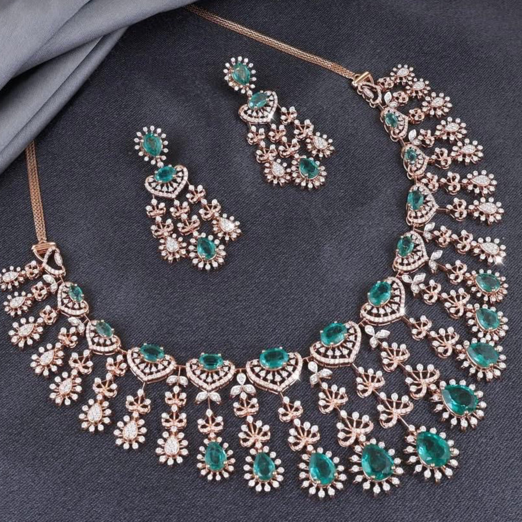 Diamond necklace wedding jewelry silver necklace 925 silver with 22k gold plated - SHABURIS