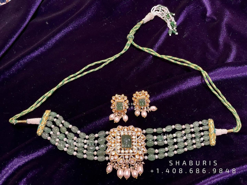 Polki beaded set,Latest Indian Jewelry,bead stone Jewelry,bead jewelry,polki jewelry,moissante,beads,bead gems,precious stone jewel