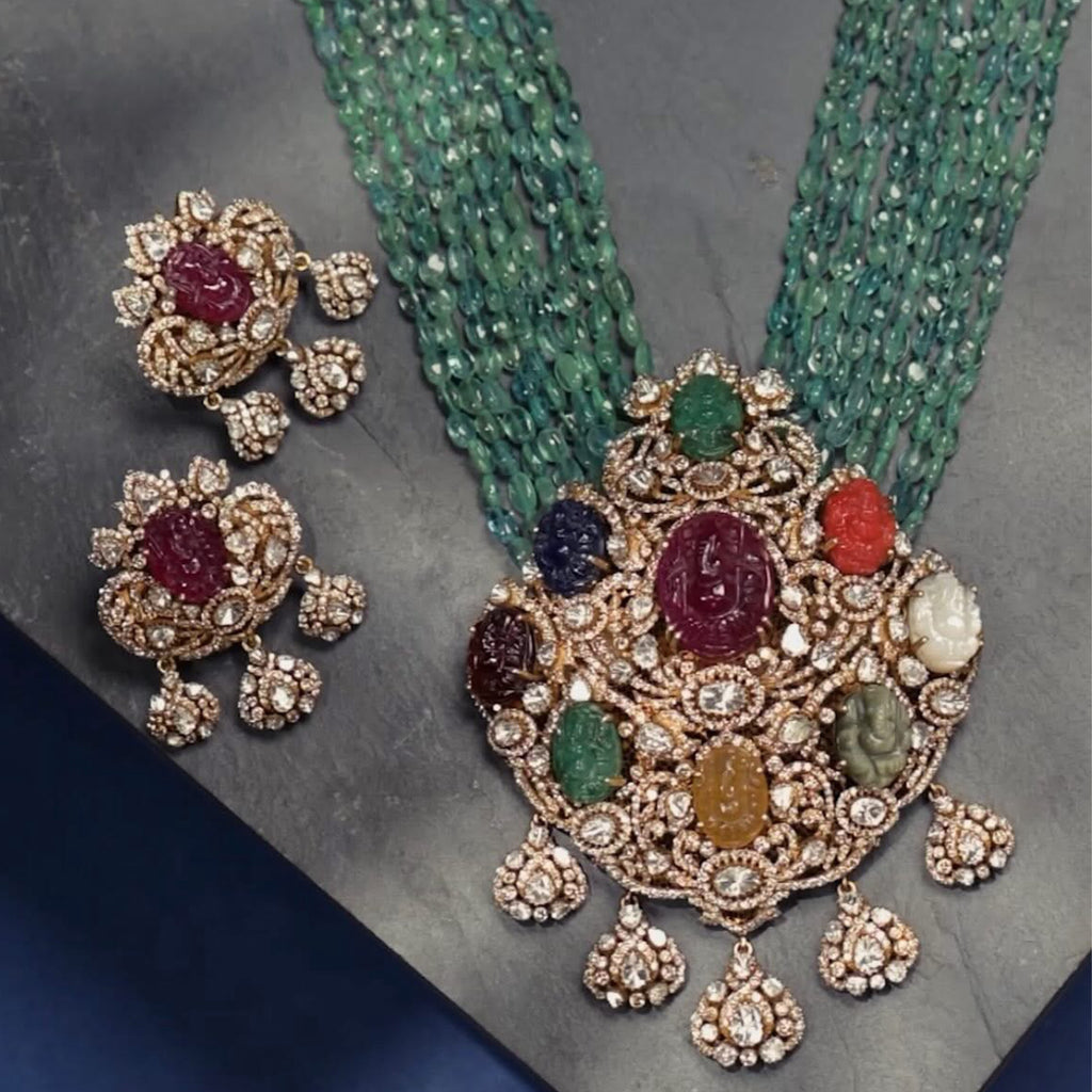 Navaratan necklace bridal necklace polki necklace diamond Jewelry necklace Pearl necklace statement jewelry silver necklace 925 silver with 22k gold plated - SHABURIS