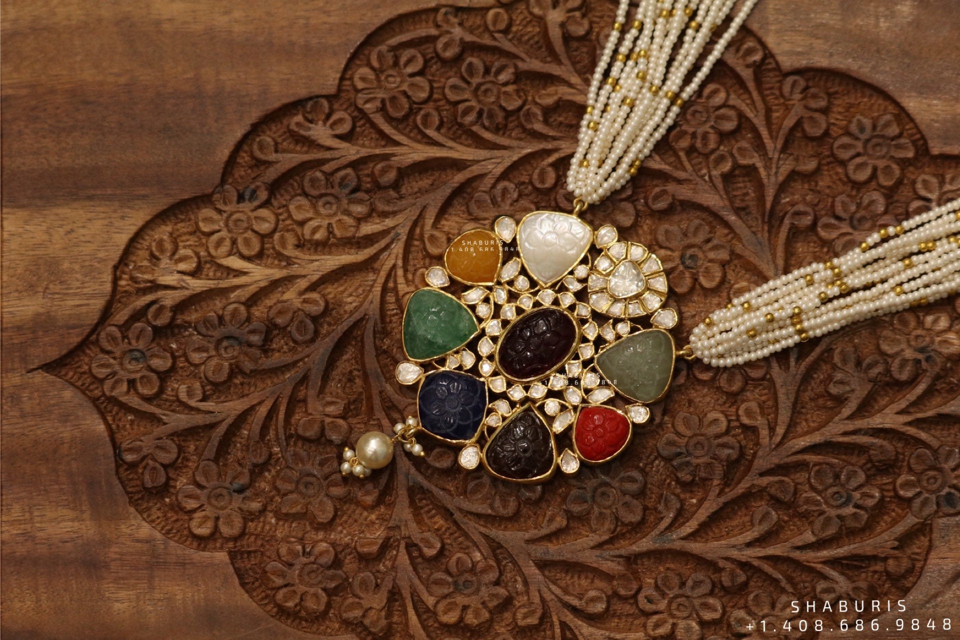 Navaratan necklace,emerald string,ruby kundan,pendent necklace,statement jewelry,indian jewelry,bridal jewelry,Traditional jewelry