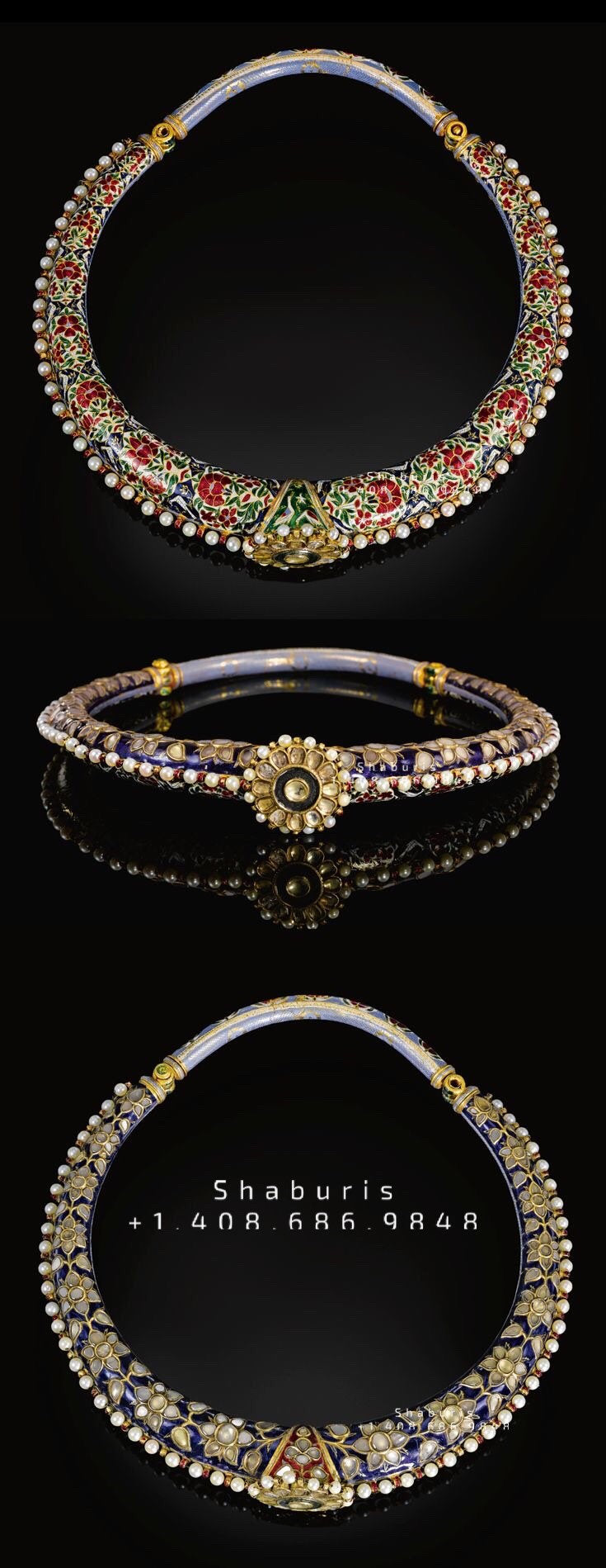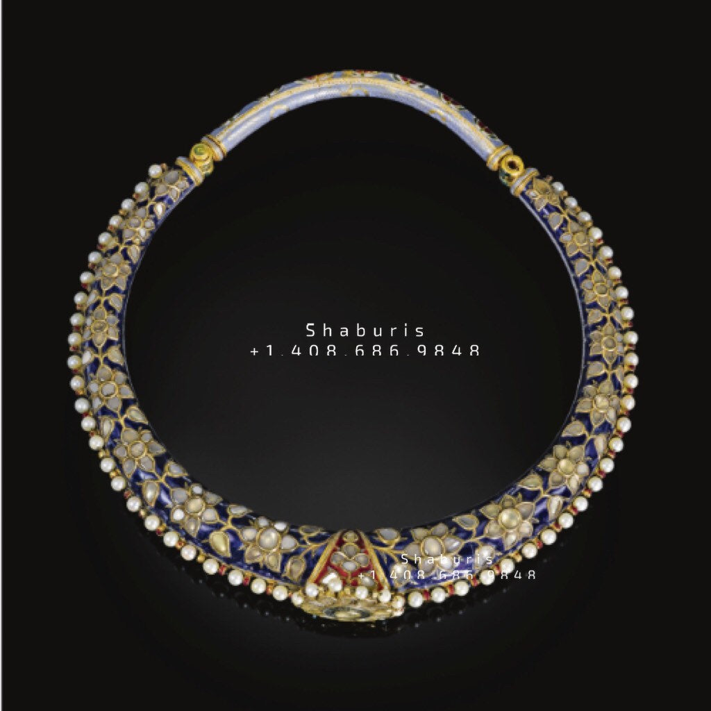 An enamelled and gem-set torque (hasli) multi purpose Jewelry,menakari Jewelry,Sterling Silver Jewelry,Pure Silver Jewelry
