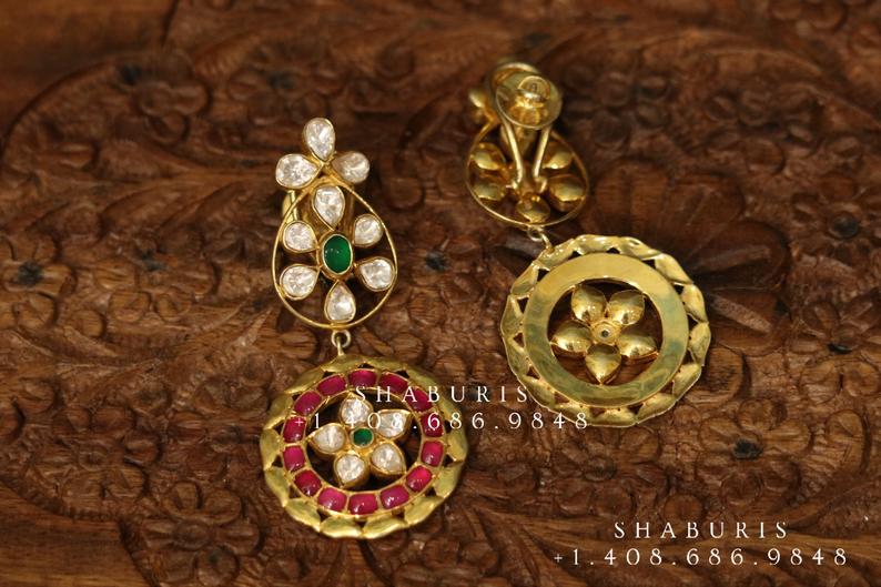 Polki earrings,South Indian coral jewelry ,polki studs,uncuts statement jewelry simple stud Jewelry,pure Silver indian jewelry-SHABURIS
