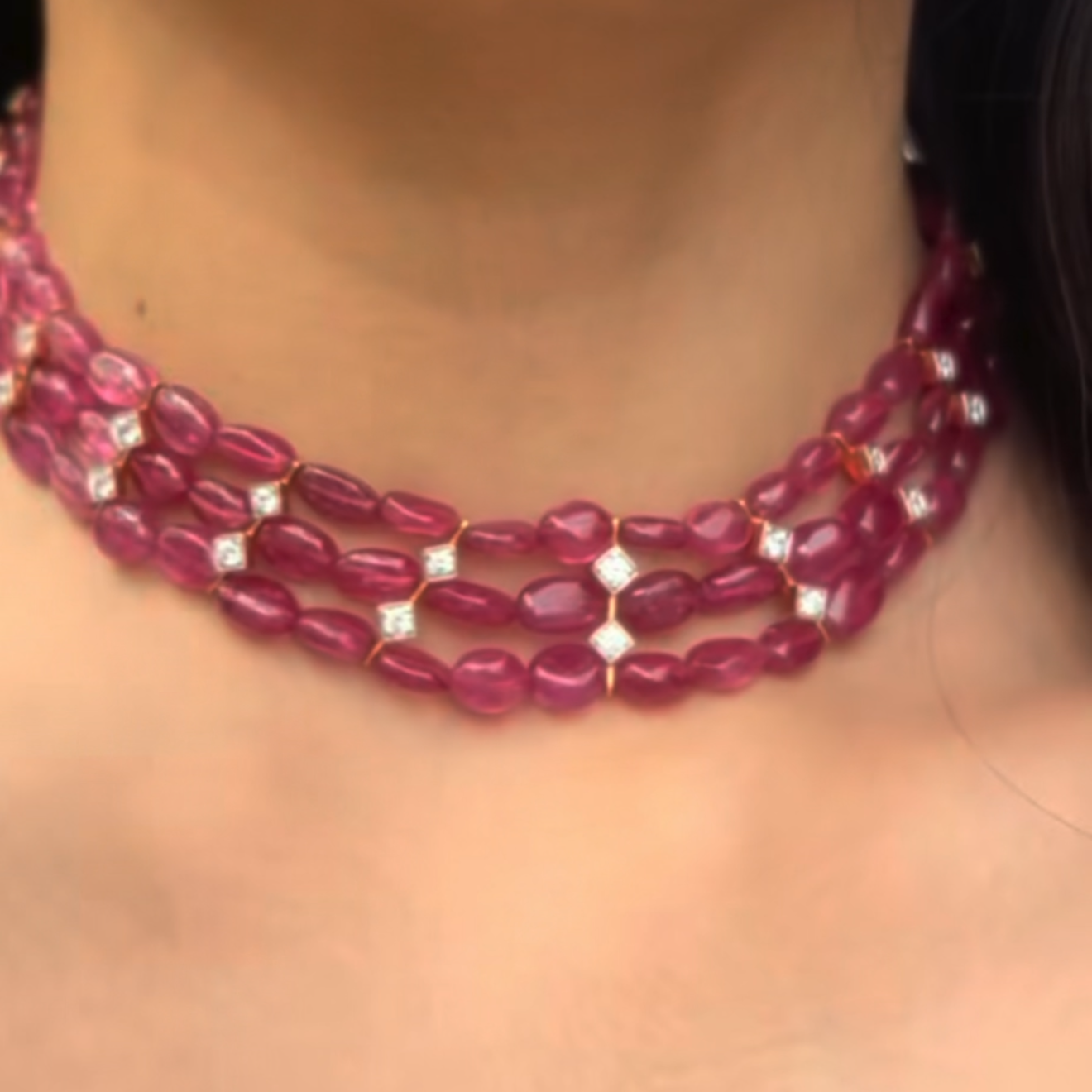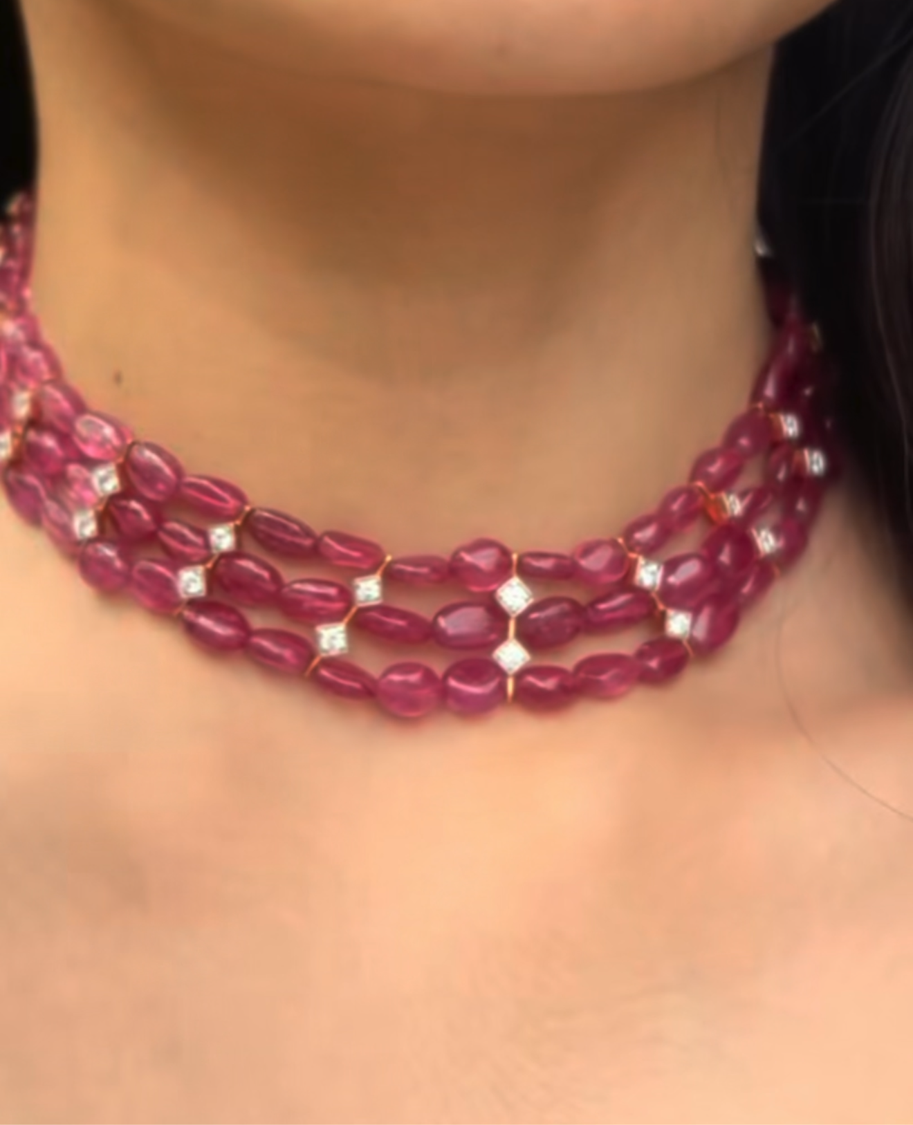 Ruby Necklace pearl Necklace wedding jewelry silver necklace 925 silver with 22k gold plated - SHABURIS